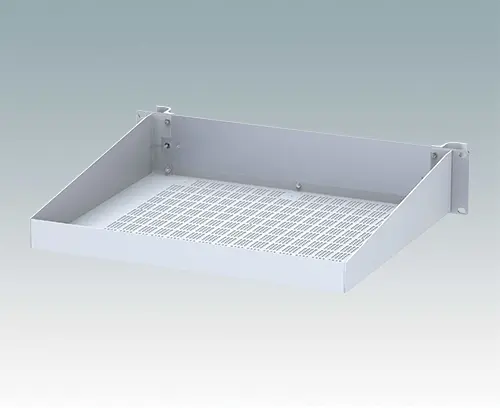 Modernes, oben offenes 19" Rack-Gehäuse aus Aluminium mit eloxierter Frontplatte und zwei ergonomischen Frontplattengriffen. Der belüftete einteilige Gehäusekorpus verfügt über schräge Seitenplatten und eine niedrige Rückwand. Der Boden ist vorgestanzt zur Befestigung von Leiterkarten-Abstandshaltern oder der als Zubehör erhältlichen internen Montageplatte. Alle Teile verfügen über M4-Erdungsbolzen für Stromdurchgang.