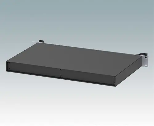 Universelles 19” Rack-Gehäuse mit eloxierten Alufrontblechen und zwei ergonomischen Frontblechgriffen. Der Gehäusekörper besteht aus einer soliden oberen Abdeckung mit abnehmbarer Bodenplatte und Rückwand. Das Bodenblech hat Montagelöcher für eine Leiterplatte oder die zugehörige Montageplatte. Für den elektrischen Anschluss sind alle Teile mit M4 Erdungsschrauben ausgestattet.