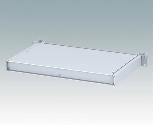 Universelles 19" Rack-Gehäuse mit eloxierten Alufrontblechen und zwei ergonomischen Frontblechgriffen. Der Alugehäusekörper besteht aus zwei Seitenblechen mit abnehmbaren Deck-, Boden- und Rückblechen. Das Bodenblech hat Montagelöcher für eine Leiterplatte oder die zugehörige Montageplatte. Für den elektrischen Anschluss sind alle Teile mit M4 Erdungsschrauben ausgestattet.