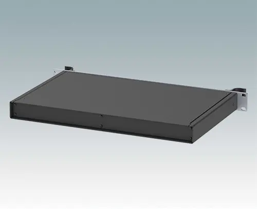 Universelles 19" Rack-Gehäuse mit eloxierten Alufrontblechen und zwei ergonomischen Frontblechgriffen. Der Alugehäusekörper besteht aus zwei Seitenblechen mit abnehmbaren Deck-, Boden- und Rückblechen. Das Bodenblech hat Montagelöcher für eine Leiterplatte oder die zugehörige Montageplatte. Für den elektrischen Anschluss sind alle Teile mit M4 Erdungsschrauben ausgestattet.