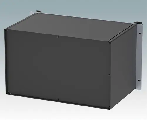 Universelles 19-Zoll-Rack-Gehäuse mit eloxierten Alufrontblechen und zwei ergonomischen Frontblechgriffen. Der Alugehäusekörper besteht aus zwei Seitenblechen mit abnehmbaren Deck-, Boden- und Rückblechen. Das Bodenblech hat Montagelöcher für eine Leiterplatte oder die zugehörige Montageplatte. Für den elektrischen Anschluss sind alle Teile mit M4 Erdungsschrauben ausgestattet.