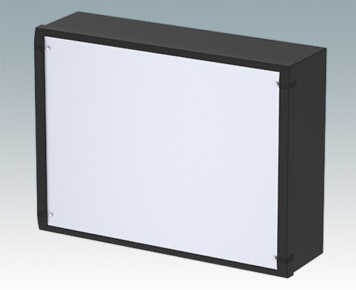 Moderne Aluminium-Gehäuse für Innenanwendungen. Elektronik während der Wandinstallation frei zugänglich. Elegantes Design mit Zink-Druckguss Frontrahmen, Haube und Rückplatte in L-Form. Front- und Montageplatten als Zubehör.