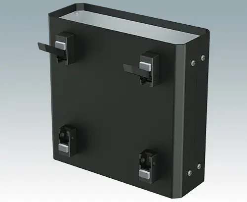 Lieferumfang Deckplatte, Bodenplatte, 19” Frontplatte, Rückplatte, Griffe (2x), M3 x 8 mm (6x), M3 x 8 mm (4x), M4 Mutter und Unterlegscheibe (4x). Komplett montiert geliefert.