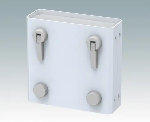 Formschöne Gehäusefüße mit ausklappbaren Kippfüßen für ergonomisch günstigen Aufstellwinkel der Geräte. In modernem Design passend für Kunststoff- und Metallgehäuse. Vierteilige Konstruktion, bestehend aus Grundkörper, TPE Anti-Rutsch-Pad zum Einstecken, Kippfuß für 120°-Stellung und selbstformender Schraube. Einsetzbar für Gehäuse mit einer max. Wandstärke von 3 mm (alternativ liefern wir auch längere Schrauben für größere Wandstärken, bitte anfragen). Je Fuß sind drei Aufnahmebohrungen im Gehäuse erforderlich, Details siehe Zeichnung.