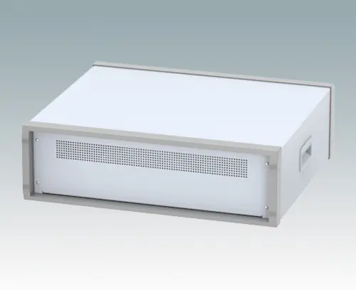 Elegante 19" Instrumentengehäuse geschaffen zur Aufnahme von Standard-3HE-Baugruppenträgern, Chassis und Frontplatten. Entsprechen DIN 41494 & IEC 297-1. Attraktives Design mit druckgegossenen Vorder-und Rückrahmen und geschweißtem Gehäuserumpf. Leichte, aber robuste Konstruktion aus aluminium.