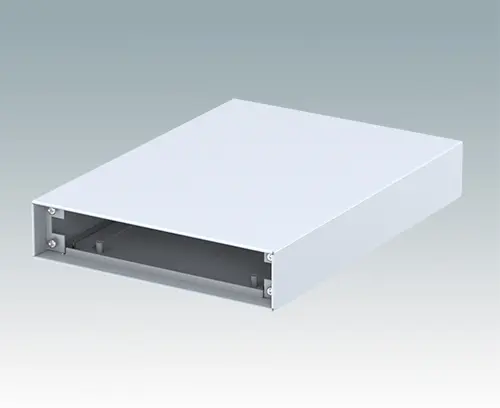 Moderne Instrumentengehäuse für Desktop- und portable Anwendungen. Die gefalzten Oberteile und Bodenplatten aus Aluminium werden unsichtbar von der Gehäuseunterseite montiert. Der Front und Rückplattenbereich ist um 8 bzw. 14 mm zurückversetzt. Front- und Rückplatten als Zubehör erhältlich.