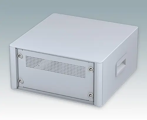 Modernes und äußerst attraktives 10.5-Zoll-Instrumentengehäuse geschaffen zur Aufnahme von Standard-3HE-Baugruppenträgern (42TE), Chassis und Frontplatten. Entsprechen DIN 41494 & IEC 297. Die eleganten Front- und Rückrahmen sind perfekt auf den Aluminiumgehäusekorpus abgestimmt. Design-Blenden (Front und Rückseite) verbergen die Montageschrauben für eine professionelle Aufmachung. Alle Gehäuseplatten sind mit M4-Gewindebolzen zum Erdanschluss ausgestattet. Das Gehäuse verfügt über eine Rückplatte, zwei ABS-Seitengriffe und vier ABS-Füße mit einsteckbare rutschfeste Gummifüße. Boden- und Rückplatte verfügen über Lüftungsschlitze. Interne Tragschienen für Baugruppenträger/Chassis.