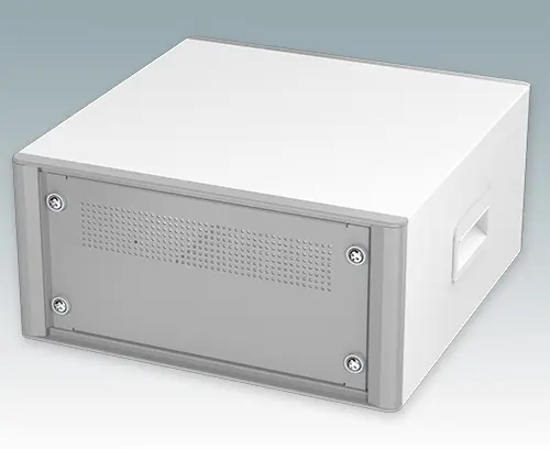 Modernes und äußerst attraktives 10.5-Zoll-Instrumentengehäuse geschaffen zur Aufnahme von Standard-3HE-Baugruppenträgern (42TE), Chassis und Frontplatten. Entsprechen DIN 41494 & IEC 297. Die eleganten Front- und Rückrahmen sind perfekt auf den Aluminiumgehäusekorpus abgestimmt. Design-Blenden (Front und Rückseite) verbergen die Montageschrauben für eine professionelle Aufmachung. Alle Gehäuseplatten sind mit M4-Gewindebolzen zum Erdanschluss ausgestattet. Das Gehäuse verfügt über eine Rückplatte, zwei ABS-Seitengriffe und vier ABS-Füße mit einsteckbare rutschfeste Gummifüße. Boden- und Rückplatte verfügen über Lüftungsschlitze. Interne Tragschienen für Baugruppenträger/Chassis.