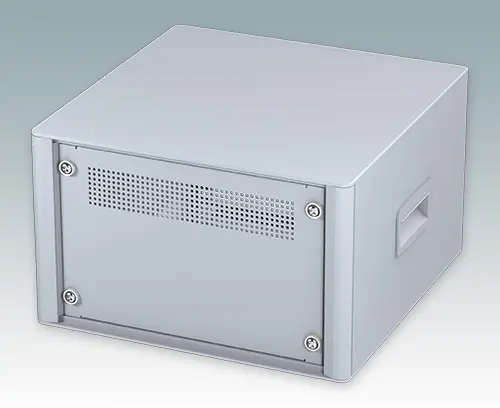 Modernes und äußerst attraktives 10.5-Zoll-Instrumentengehäuse geschaffen zur Aufnahme von Standard-4HE-Baugruppenträgern (42TE), Chassis und Frontplatten. Entsprechen DIN 41494 & IEC 297. Die eleganten Front- und Rückrahmen sind perfekt auf den Aluminiumgehäusekorpus abgestimmt. Design-Blenden (Front und Rückseite) verbergen die Montageschrauben für eine professionelle Aufmachung. Alle Gehäuseplatten sind mit M4-Gewindebolzen zum Erdanschluss ausgestattet. Das Gehäuse verfügt über eine Rückplatte, Griffbügel und vier ABS-Füße mit einsteckbare rutschfeste Gummifüße. Boden- und Rückplatte verfügen über Lüftungsschlitze. Interne Tragschienen für Baugruppenträger/Chassis.