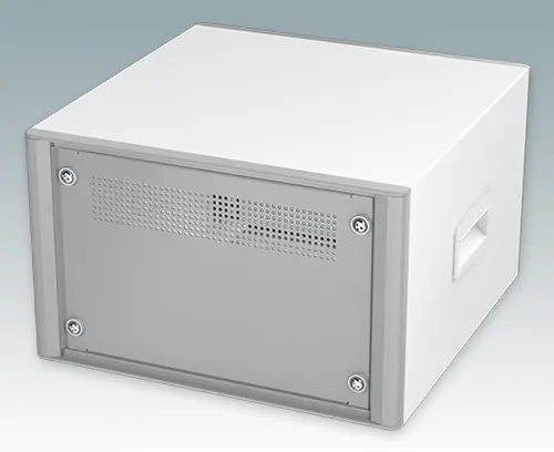 Modernes und äußerst attraktives 10.5-Zoll-Instrumentengehäuse geschaffen zur Aufnahme von Standard-4HE-Baugruppenträgern (42TE), Chassis und Frontplatten. Entsprechen DIN 41494 & IEC 297. Die eleganten Front- und Rückrahmen sind perfekt auf den Aluminiumgehäusekorpus abgestimmt. Design-Blenden (Front und Rückseite) verbergen die Montageschrauben für eine professionelle Aufmachung. Alle Gehäuseplatten sind mit M4-Gewindebolzen zum Erdanschluss ausgestattet. Das Gehäuse verfügt über eine Rückplatte, Griffbügel und vier ABS-Füße mit einsteckbare rutschfeste Gummifüße. Boden- und Rückplatte verfügen über Lüftungsschlitze. Interne Tragschienen für Baugruppenträger/Chassis.