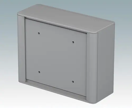 Modernes und äußerst attraktives Instrumentengehäuse aus Aluminium zur Aufnahme von Displays, Touchscreens und HMI-Elektronik. Auf der Rückseite sind VESA MIS-D 100-Befestigungspunkte vorhanden, um das Gerät an einem Standard VESA-Befestigungsarm oder einer Montagehalterung zu befestigen. Am Gehäusekörper aus Aluminium sind elegante Druckgussblenden vorne und hinten angebracht. Aufsteckbare Design-Blenden vorne und hinten verbergen alle Montageschrauben und sorgen für ein sehr professionelles Erscheinungsbild. Die Bodenplatte an der Unterseite bietet Platz für die Kabeleinführung. Im Inneren sind M3-Stehbolzen zur Leiterplattenmontage vorhanden. Die Montageprofile verfügen außerdem über M3-Gewinde und Führungsschienen zur Befestigung von Montageplatten. An allen Seiten sind M4-Erdungsbolzen angebracht; Einige Bolzen können auch mit Haltebändern verwendet werden, um die Vorder-/Rückwände während der Wartung zu halten. Frontplatten sind separat erhältlich. Zum Zubehör gehören ein Wandmontagesatz, eine Mastmontagehalterung und eine Montageplatte.