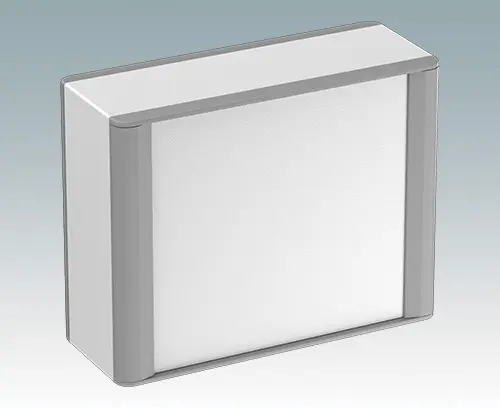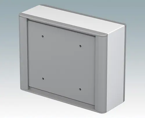 Modernes und äußerst attraktives Instrumentengehäuse aus Aluminium zur Aufnahme von Displays, Touchscreens und HMI-Elektronik. Auf der Rückseite sind VESA MIS-D 100-Befestigungspunkte vorhanden, um das Gerät an einem Standard VESA-Befestigungsarm oder einer Montagehalterung zu befestigen. Am Gehäusekörper aus Aluminium sind elegante Druckgussblenden vorne und hinten angebracht. Aufsteckbare Design-Blenden vorne und hinten verbergen alle Montageschrauben und sorgen für ein sehr professionelles Erscheinungsbild. Die Bodenplatte an der Unterseite bietet Platz für die Kabeleinführung. Im Inneren sind M3-Stehbolzen zur Leiterplattenmontage vorhanden. Die Montageprofile verfügen außerdem über M3-Gewinde und Führungsschienen zur Befestigung von Montageplatten. An allen Seiten sind M4-Erdungsbolzen angebracht; Einige Bolzen können auch mit Haltebändern verwendet werden, um die Vorder-/Rückwände während der Wartung zu halten. Frontplatten sind separat erhältlich. Zum Zubehör gehören ein Wandmontagesatz, eine Mastmontagehalterung und eine Montageplatte.