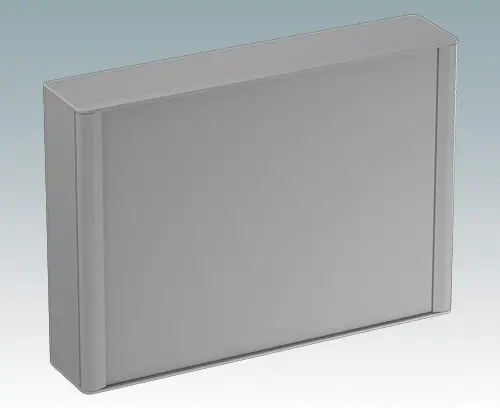 Modernes und äußerst attraktives Instrumentengehäuse aus Aluminium zur Aufnahme von Displays, Touchscreens und HMI-Elektronik. Auf der Rückseite sind VESA MIS-D 100-Befestigungspunkte vorhanden, um das Gerät an einem Standard VESA-Befestigungsarm oder einer Montagehalterung zu befestigen. Am Gehäusekörper aus Aluminium sind elegante Druckgussblenden vorne und hinten angebracht. Aufsteckbare Design-Blenden vorne und hinten verbergen alle Montageschrauben und sorgen für ein sehr professionelles Erscheinungsbild. Die Bodenplatte an der Unterseite bietet Platz für die Kabeleinführung. Im Inneren sind M3-Stehbolzen zur Leiterplattenmontage vorhanden. Die Montageprofile verfügen außerdem über M3-Gewinde und Führungsschienen zur Befestigung von Montageplatten. An allen Seiten sind M4-Erdungsbolzen angebracht; Einige Bolzen können auch mit Haltebändern verwendet werden, um die Vorder-/Rückwände während der Wartung zu halten. Frontplatten sind separat erhältlich. Zum Zubehör gehören ein Wandmontagesatz, eine Mastmontagehalterung und eine Montageplatte.