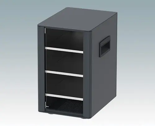 Technomet TX124S Äußerst attraktive Aluminiumgehäuse im Tower-Stil für die Instrumentierung. Die platzsparende Stellfläche maximiert den Platz auf dem Tisch oder Arbeitsplatz. Einheitliches Design ohne sichtbare Befestigungsschrauben. Druckguss-Front- und Rückrahmen schließen bündig mit dem Gehäusekorpus ab und sorgen für ein harmonisches Design. Steckbare Design-Blenden verbergen die Schrauben am Gehäuse und an der Front- und Rückplatte. Lüftungslöcher in Boden- und Rückplatte. Innenliegendes Chassis zur Aufnahme drei oder vier fachböden (Zubehör) für Leiterplatten und Baugruppen. M4 Erdungspunkte an allen Platten. Lieferung mit seitlichen Griffen und rutschfesten ABS-Füßen. Frontplatten, Fachböden und Kartenführungen sind esondert zu bestellen. Bestellen Sie Ihre eigene kundenspezifische Version.