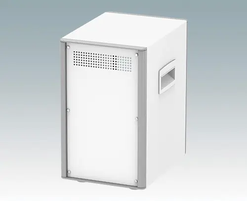 Äußerst attraktive Aluminiumgehäuse im Tower-Stil für die Instrumentierung. Die platzsparende Stellfläche maximiert den Platz auf dem Tisch oder Arbeitsplatz. Einheitliches Design ohne sichtbare Befestigungsschrauben. Druckguss-Front- und Rückrahmen schließen bündig mit dem Gehäusekorpus ab und sorgen für ein harmonisches Design. Steckbare Design-Blenden verbergen die Schrauben am Gehäuse und an der Front- und Rückplatte. Lüftungslöcher in Boden- und Rückplatte. Innenliegendes Chassis zur Aufnahme drei oder vier fachböden (Zubehör) für Leiterplatten und Baugruppen. M4 Erdungspunkte an allen Platten. Lieferung mit seitlichen Griffen und rutschfesten ABS-Füßen. Frontplatten, Fachböden und Kartenführungen sind esondert zu bestellen. Bestellen Sie Ihre eigene kundenspezifische Version.