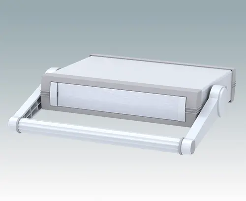 Modernes Aluminiumgehäuse mit Griffbügel für Tischanwendungen und den mobilen Einsatz. Vormontiertes Innenchassis mit vier Rastführungen für Leiterplatinen. Vier Standardführungspositionen – zusätzliche Positionen können auf Anfrage ausgestanzt werden. Elegante Front- und Rückrahmen passend zum vorgefertigten Gehäuseaufbau. Eine abnehmbare Rückplatte und vier selbstklebende rutschhemmende Füße sind inklusive. Frontplatten-Set als Zubehör.