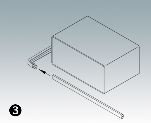 Das Aluminium-Griffprofil passt zwischen die beiden Seitenarme und wird auf die erforderliche Länge zugeschnitten geliefert (26 mm kürzer als die Breite des Gehäuses).