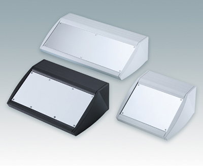 Das UNIDESK-Sortiment von Metallgehäusen mit geneigter Front ist in drei Standardgrößen erhältlich: